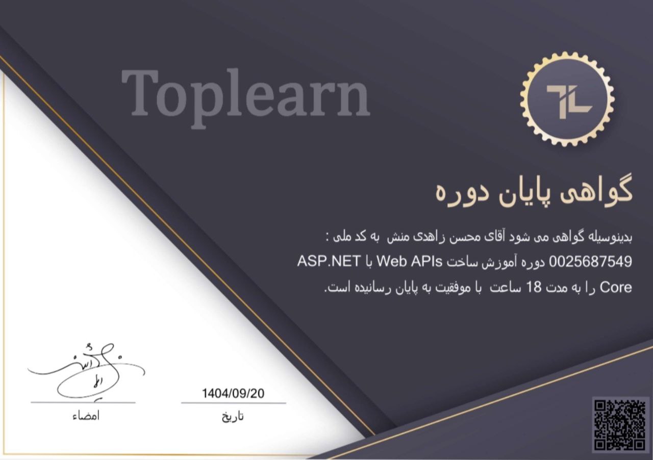 توسعهدهنده سمت سرور با فعالیت در زمینه طراحی و توسعه برنامههای تحت وب با ASP.NET Core و ایجاد RESTful API. با انجام چندین پروژه واقعی، توانستهام مهارتهای خود را در طراحی ساختارهای مقیاسپذیر، پیادهسازی معماری تمیز و مدیریت دیتابیسهای SQL تقویت کنم.